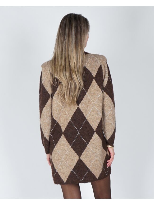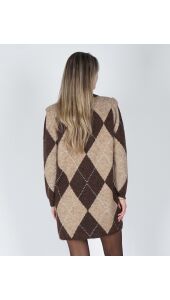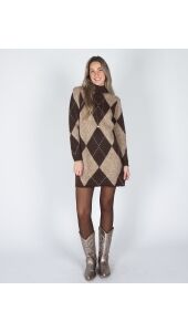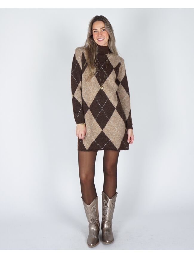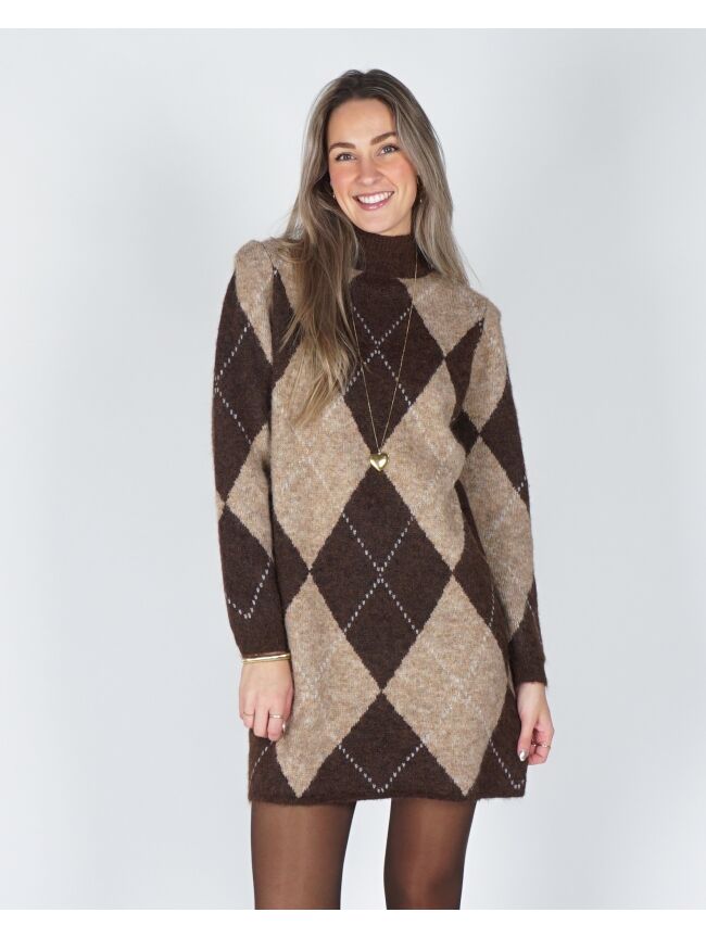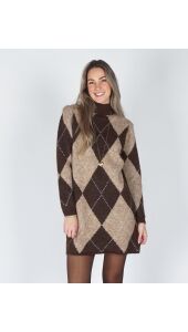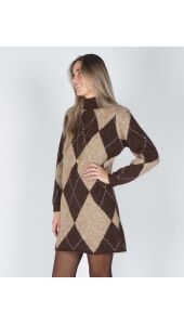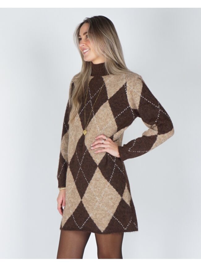 GEBREIDE JURK GERUIT CAMEL/BRUIN