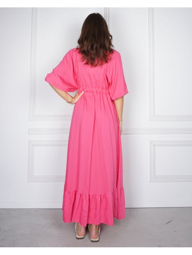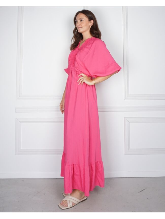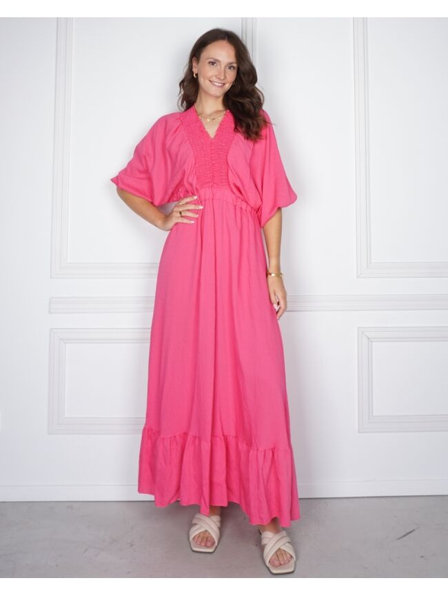 De flowy fit en subtiele details geven ‘m een moderne twist. Deze jurk is perfect voor een city stroll, summer event of beach dinner. Combineer met je favoriete sandals en statement jewelry voor een moeiteloos krachtige look.
