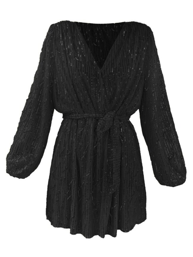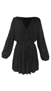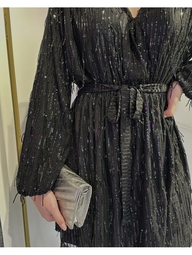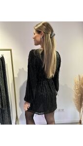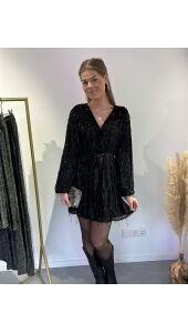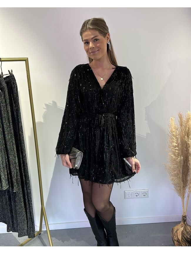 Wauw! Kijk deze nieuwe jurk! De jurk heeft glitter franjes. In de taille zit een stiek waardoor hij mooi accentueert. Super leuk voor feestjes en de feestdagen die er aan komen!