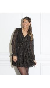 Dit zwarte jurkje met een super tof printje is jouw nieuwe go-to voor elke gelegenheid. De mouwen hebben een speels roffel-effect en zijn niet gevoerd voor dat luchtige gevoel. Met de knoopjes op de borst en het touwtje in de taille kun je ‘m helemaal naar jouw stijl aanpassen. Perfect voor een casual dag of een avondje uit.