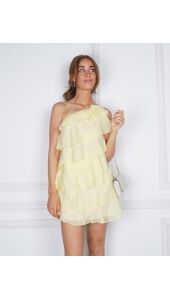 Get that classy look! Wauw, wij zijn verliefd op deze prachtige gele jurk! De jurk heeft een lichtgele kleur en heeft een prachtige satijnen look die zorgt voor een stijlvolle look en is daardoor perfect voor ieder evenement. De achterkant van de jurk is ook echt prachtig! Draag de korte jurk naar een bruiloft of als je op een zomerse avond lekker gaat uit eten. Maak de look compleet met mooie statement sieraden, we love it!