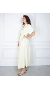 Een fijne maxi jurk kan niet ontbreken in jouw summer wardrobe. De jurk heeft een overslag model en is perfect voor een city stroll, summer event of beach dinner. Combineer met je favoriete sandals en statement jewelry voor een moeiteloos krachtige look.