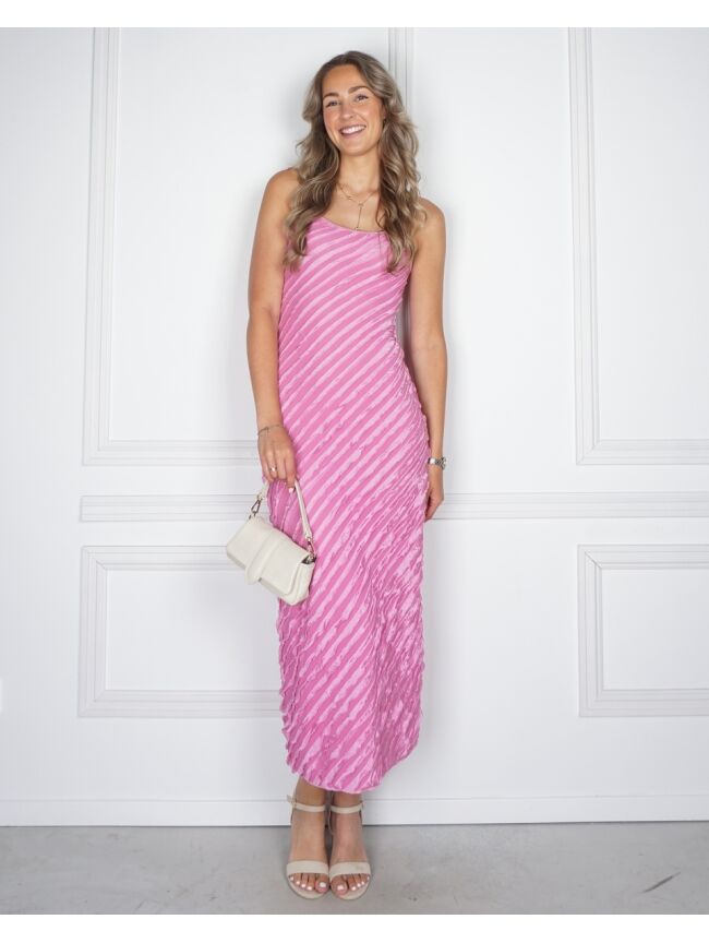 Summer is here! Deze prachtige maxi jurk heeft dunne verstelbare bandjes en ruffles all-over. De jurk sluit heel mooi aan waardoor je figuur prachtig wordt geaccentueerd! Combineer met een slippertje op een warme zomerdag of ga voor een slingback om hem net iets chiquer te stylen.