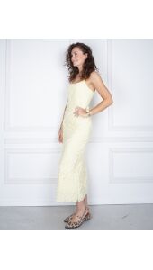 Summer is here! Deze prachtige maxi jurk heeft dunne verstelbare bandjes en ruffles all-over. De jurk sluit heel mooi aan waardoor je figuur prachtig wordt geaccentueerd! Combineer met een slippertje op een warme zomerdag of ga voor een slingback om hem net iets chiquer te stylen.