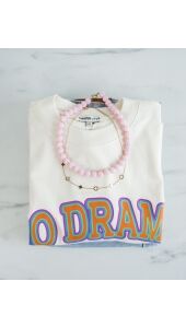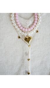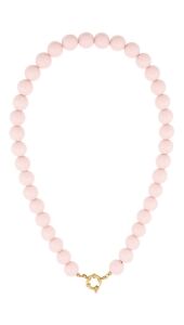 Soft & stylish! Deze lichtroze ketting met fijne gouden details voegt een vleugje kleur en zachtheid toe aan je look. Perfect om alleen te dragen of te layeren met andere necklaces voor een romantische en speelse stijl.