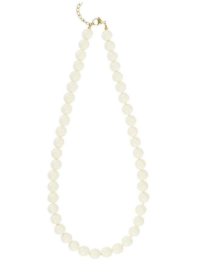 De ketting met kralen lichtgeel is een elegante ketting met subtiele lichtgele kralen, afgewerkt met fijne gouden details. De zachte tint geel brengt warmte en frisheid, terwijl het goud zorgt voor een chique uitstraling. Perfect te dragen bij elke outfit, van casual tot feestelijk.