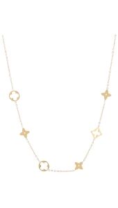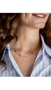 Deze gouden ketting met fijne open klaver charms staat symbool voor geluk en elegantie. De subtiele vormgeving maakt 'm perfect voor elke dag én ideaal om te layeren met andere necklaces. Een tijdloze must-have voor je sieradencollectie.
