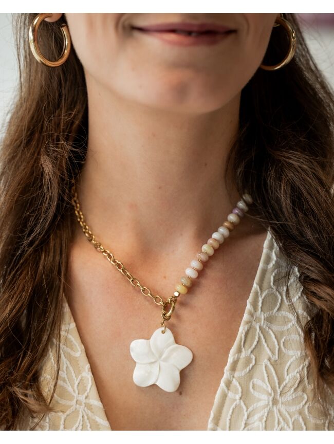 Deze kralenketting met een schattige bloem geeft je outfit een frisse, zomerse twist. De kleurrijke kralen en het bloemdetail zorgen voor een vrolijke en speelse look – perfect voor zonnige dagen, strandmomenten of als vrolijke toevoeging aan je dagelijkse stijl.