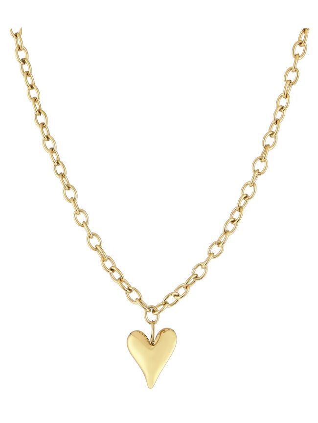 Deze gouden lange ketting met hartbedel is een echte musthave voor iedere sieradenlover. De grove schakelketting geeft een stoere touch, terwijl het glanzende hartje zorgt voor een vrouwelijke en romantische uitstraling. Een perfecte combinatie van trendy en tijdloos.