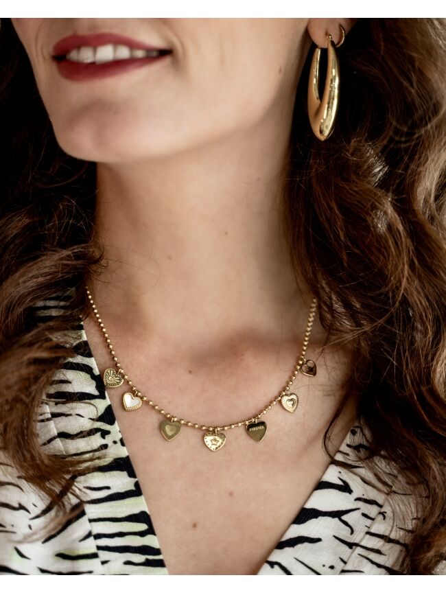 BEDELKETTING HARTJES MIX GOUD
