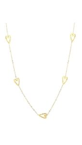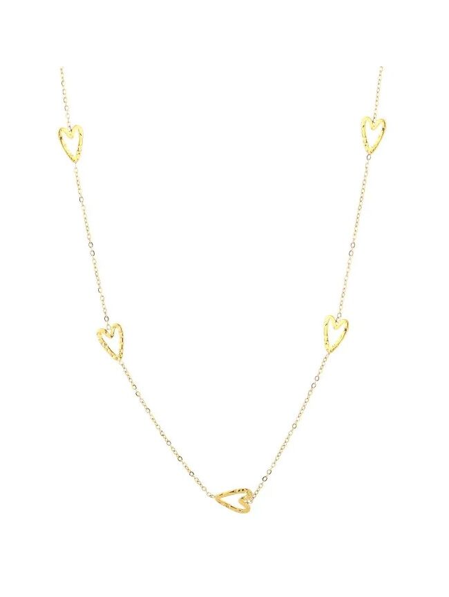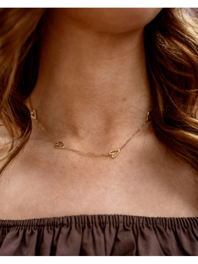 Deze fijne ketting met hartjes straalt zachtheid en romantiek uit. De subtiele hartvormige hangertjes symboliseren liefde, vriendschap en verbondenheid – perfect als cadeau voor een dierbare of als charmant detail in je eigen look.