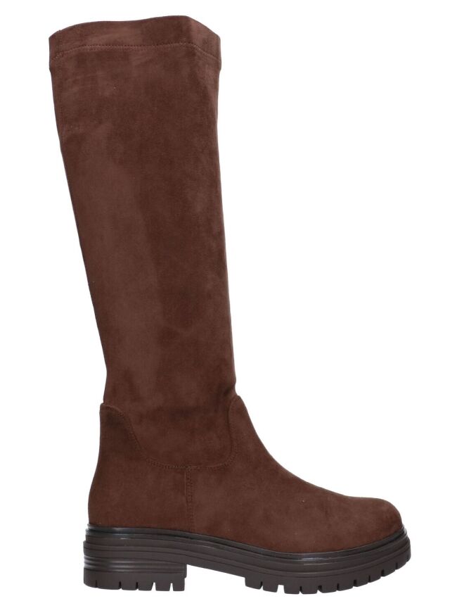 Deze hoge laarzen zijn een tijdloze must-have voor elk seizoen. De zachte suède look in donker bruine tint geeft de laars een luxe uitstraling en is eindeloos te combineren. Deze laarzen geven elke look een stoere-touch! Een echte essential die niet mag ontbreken in je garderobe.