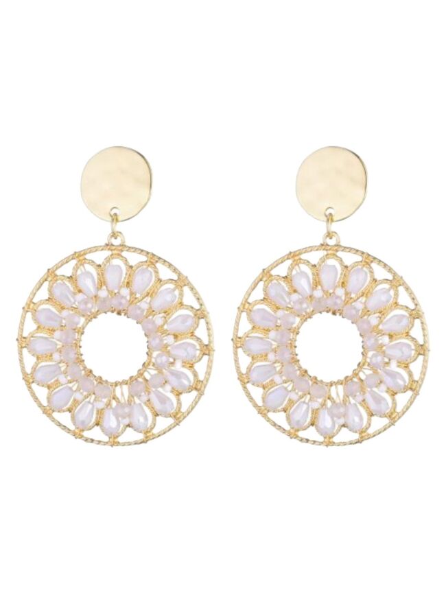 Deze oorbellen met lichte steentjes en een opengewerkt design geven je outfit een frisse en speelse uitstraling. De ronde vorm en goudkleurige details zorgen voor een mooi geheel. Leuk om je look net wat extra’s te geven.