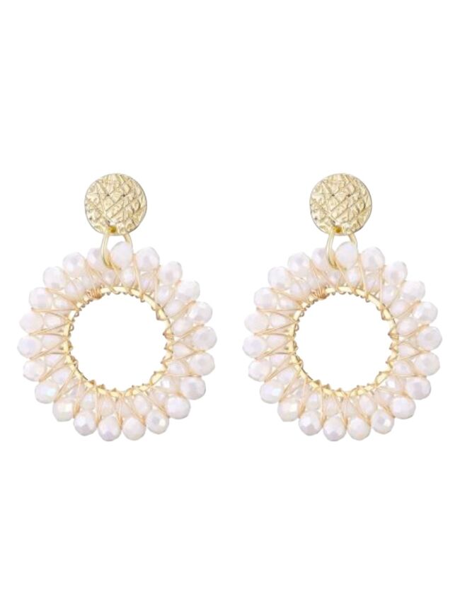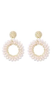 Deze oorbellen met witte kraaltjes geven je look een frisse en lichte uitstraling. De ronde vorm en goudkleurige details zorgen voor een speels effect. Leuk om te dragen bij elke outfit, van casual tot iets netter.