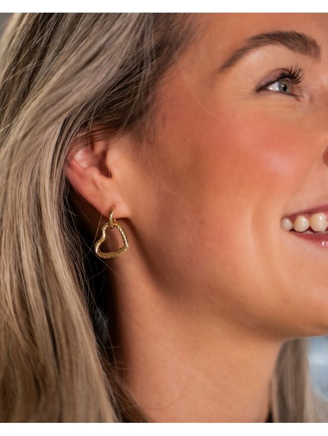 OORRINGEN MET HARTJE STUCTUUR GOUD