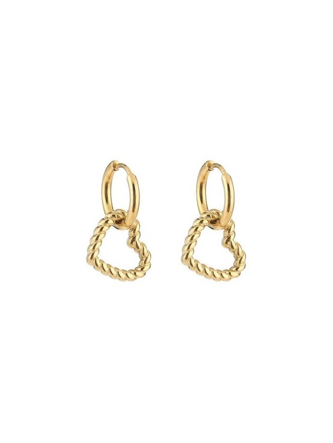 Deze oorbellen met gedraaid hart vormen een stijlvol symbool van liefde en elegantie. Het speelse, gedraaide design vangt subtiel het licht en geeft elke look een chique en moderne uitstraling, perfect om je outfit nét dat beetje extra te geven.