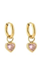 OORBELLEN MET ZIRKONIA HARTJE ROZE