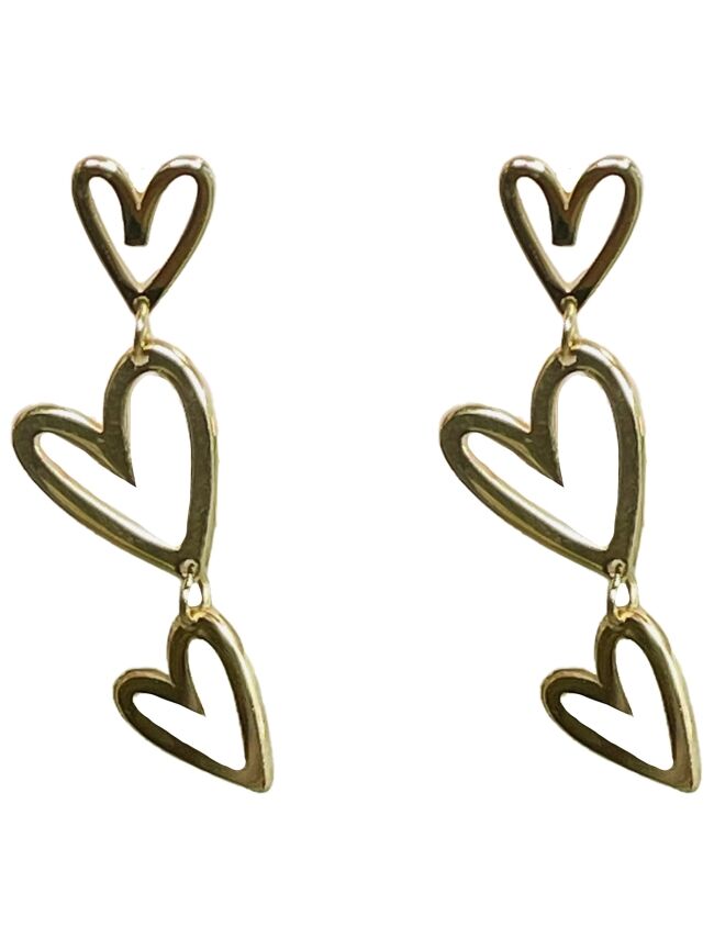 Spread the love! Niet een, niet twee, maar drie hartjes. Hoe leuk zijn deze drie vallende hart oorbellen. Heel leuk om je outfit met deze oorbellen af te stijlen.