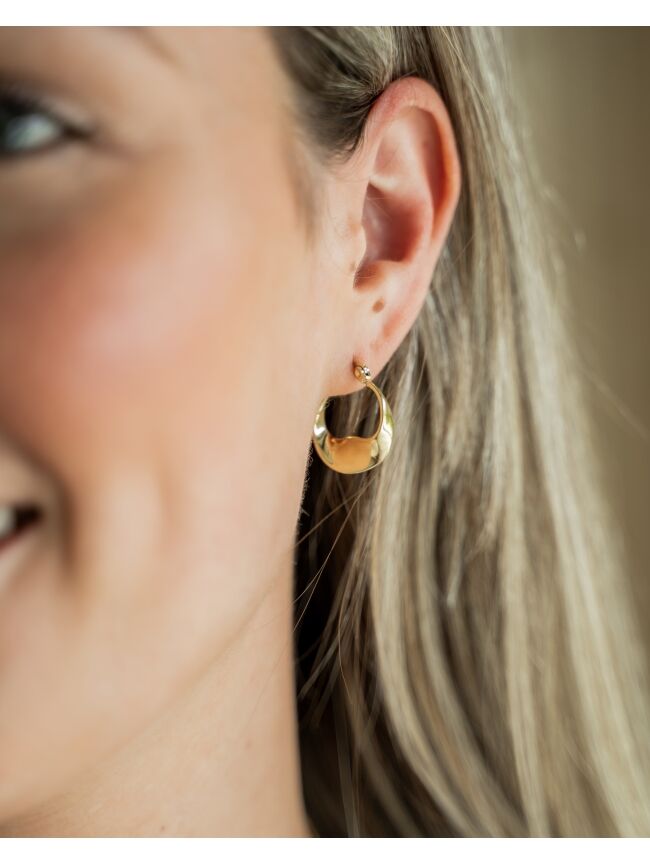 Deze gouden waved hoops oorbellen combineren klassieke eenvoud met een moderne draai. Het golvende ontwerp voegt beweging en flair toe aan je look, waardoor ze perfect zijn voor zowel dagelijks gebruik als een chique avondoutfit. Tijdloos, stijlvol en altijd een statement.