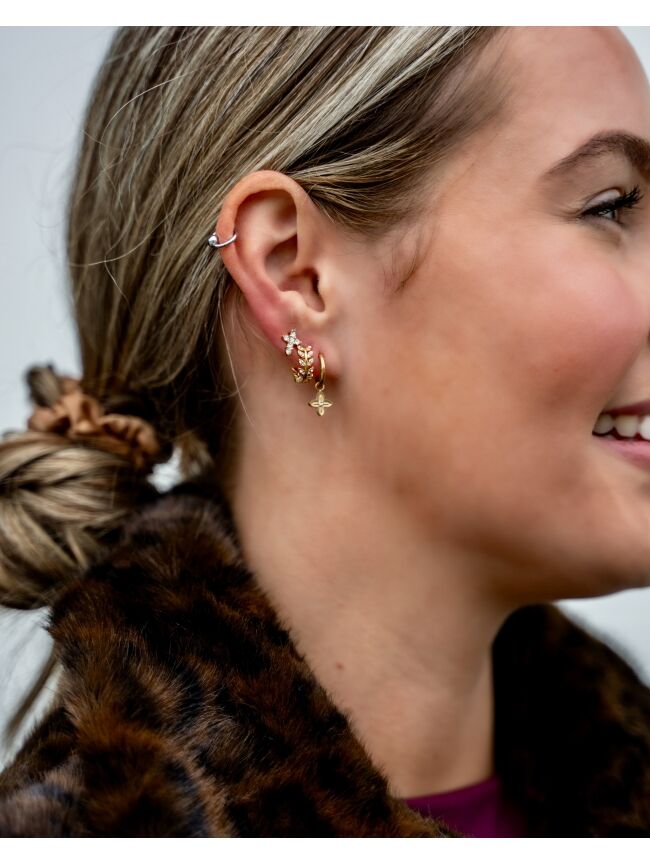 Deze oorring met een klavertje is een schattige lucky charm voor elke dag! Het klavertje geeft een speelse en positieve touch aan je look, terwijl het minimalistische design makkelijk te combineren is met andere oorbellen. Draag ‘m solo voor een subtiele vibe of mix ‘n match voor een trendy ear party.