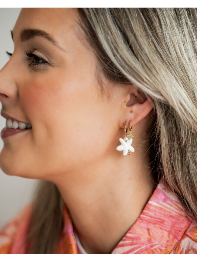 Hoe cute zijn deze pareloorbellen met zeester! De oorbellen zijn gemaakt van stainless steel, zijn waterproof en verkleuren niet. Perfect voor jouw nieuwe earparty