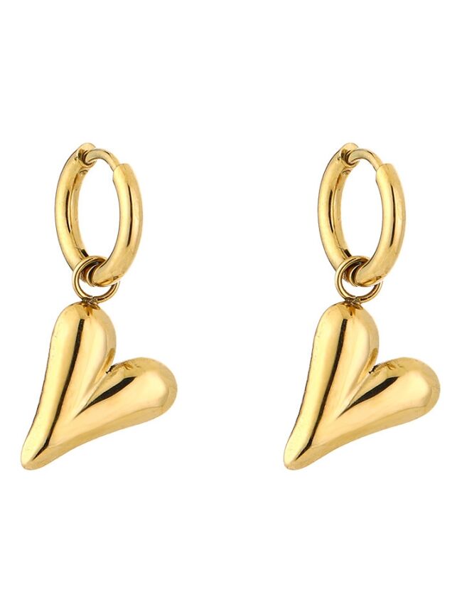 Deze gouden oorbellen met hartbedel zijn een echte statement piece. De glanzende, volle hartvorm geeft een moderne en krachtige uitstraling, terwijl de kleine hoops zorgen voor een tijdloze basis. Perfect voor wie houdt van een subtiele, maar opvallende touch.