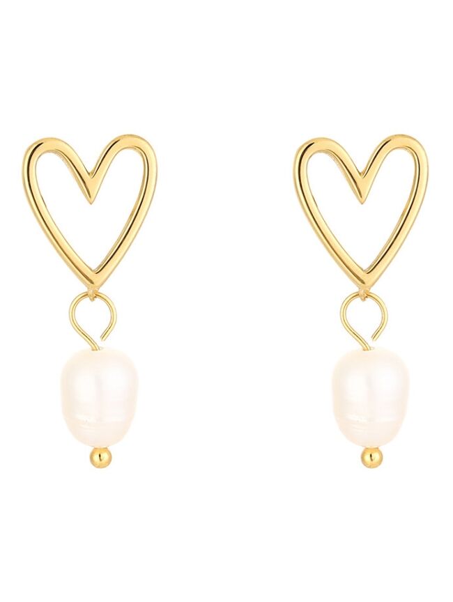Deze elegante oorbellen combineren romantiek met een klassieke touch. Het open gouden hartje geeft een speelse en vrouwelijke uitstraling, terwijl de subtiele parelbedel zorgt voor een tijdloze, chique finishing touch.