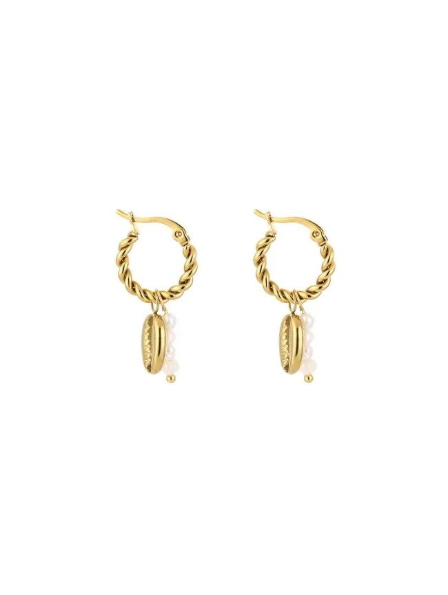 OORBELLEN MET PARELS EN SCHELP GOUD