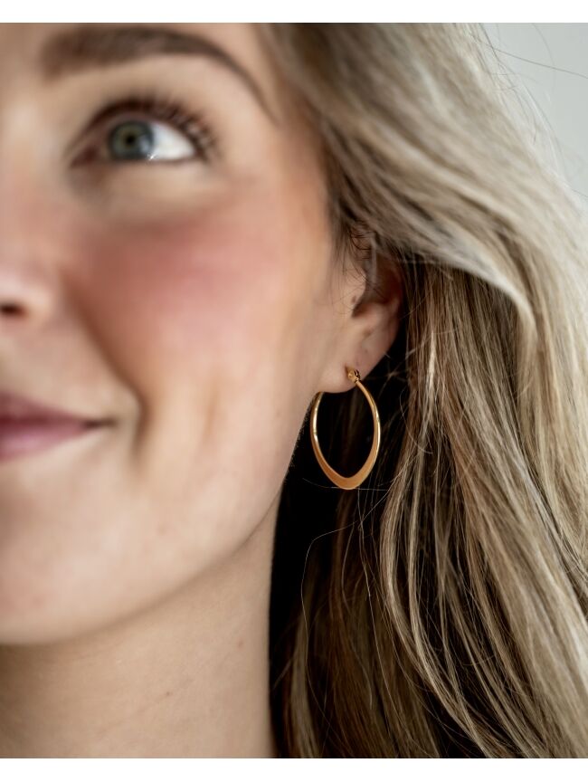 Deze elegante ovale hoop oorbellen zijn een tijdloze toevoeging aan elke sieradencollectie. Het minimalistische design en de warme goudkleur zorgen voor een stijlvolle en vrouwelijke uitstraling. Perfect om elke dag te dragen, maar ook mooi voor een chiquere look.