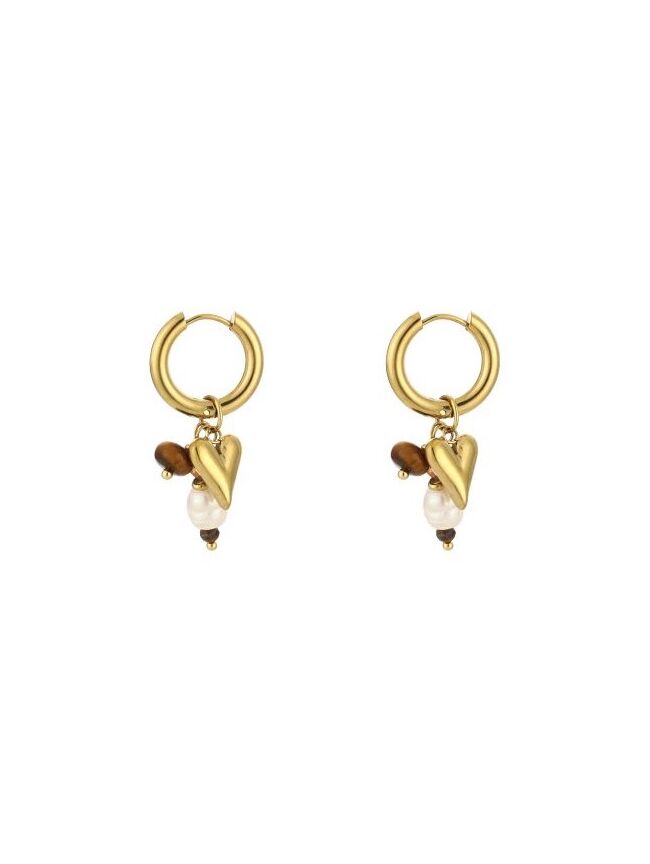 Deze oorbellen met bruin hartje brengen warmte en elegantie samen in één design. De zachte, aardse tint geeft een natuurlijke en stijlvolle uitstraling die perfect past bij elke outfit, subtiel, charmant en vol karakter.
