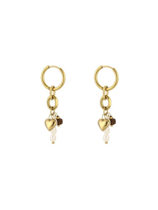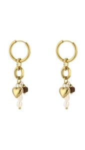 OORBELLEN MET HARTJE EN PARELS BRUIN