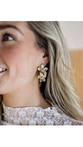 OORBELLEN TWEE BLOEMEN GOUD