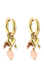 KRALEN OORBELLEN PAREL EN HARTJE GOUD