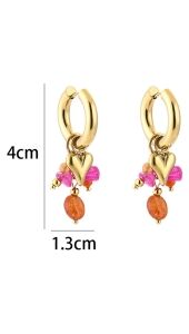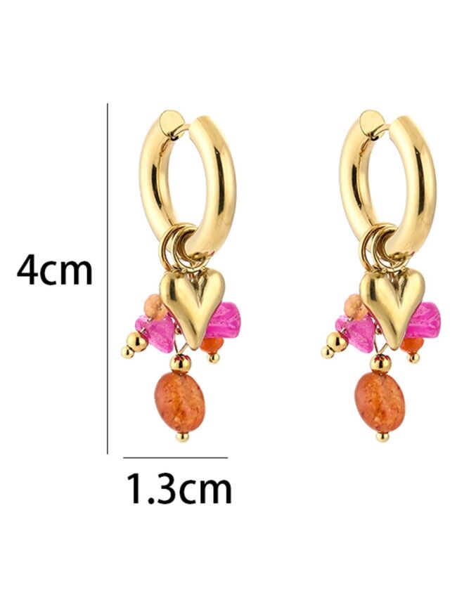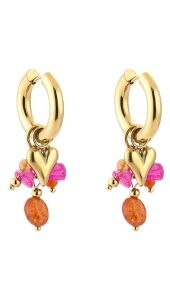 Deze opvallende oorbellen zijn een echte eyecatcher! De gouden hoops met glanzend hartbedeltje worden speels gecombineerd met kleurrijke steentjes in roze- en oranjetinten. De mix van goud en kleur zorgt voor een vrolijke, trendy uitstraling met een vrouwelijke touch.