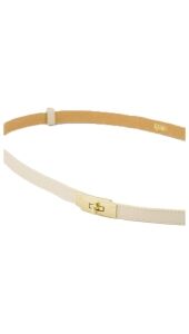 Geef je look een edgy twist met deze ecru schakelriem. Het design combineert stoere, oversized schakels met een subtiele, neutrale tint – perfect voor een sophisticated en fashion-forward uitstraling. Draag hem om je taille voor een gedefinieerd silhouet of nonchalant over een blazer voor die effortless cool factor. De riem kan je verstellen in alle maten.