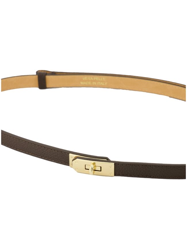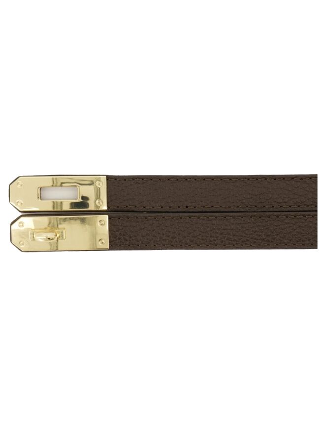 Geef je look een edgy twist met deze donkerbruine schakelriem. Het design combineert stoere, oversized schakels met een subtiele, neutrale tint – perfect voor een sophisticated en fashion-forward uitstraling. Draag hem om je taille voor een gedefinieerd silhouet of nonchalant over een blazer voor die effortless cool factor. De riem kan je verstellen in alle maten.