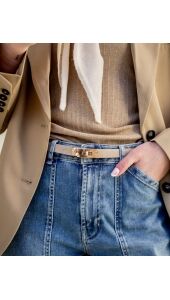 Geef je look een edgy twist met deze ecru schakelriem. Het design combineert stoere, oversized schakels met een subtiele, neutrale tint – perfect voor een sophisticated en fashion-forward uitstraling. Draag hem om je taille voor een gedefinieerd silhouet of nonchalant over een blazer voor die effortless cool factor. De riem kan je verstellen in alle maten.