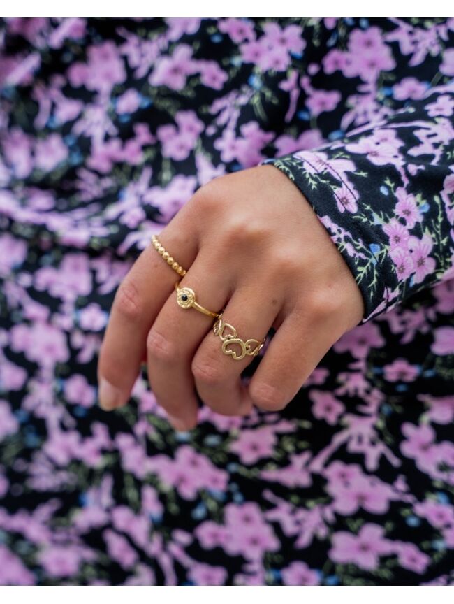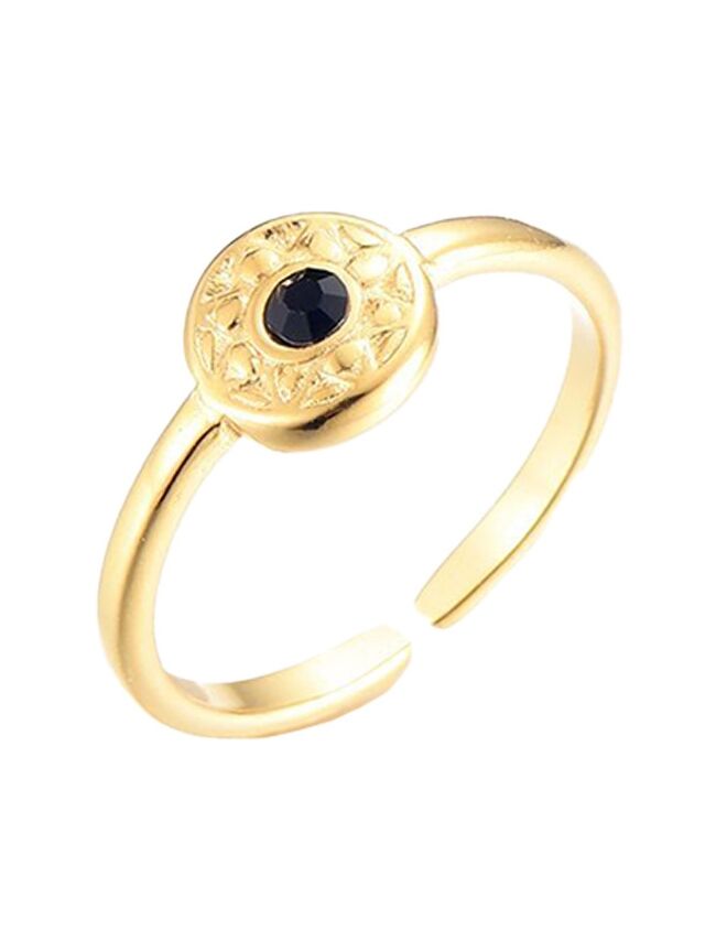 Wauw! Een gouden ring met zwart steentje. Perfect te matchen bij al jouw zwarte outfits. we love it! Combineer met een van onze andere ringen voor de perfecte armparty!