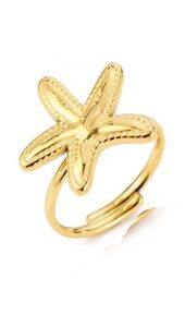 Deze goudkleurige ring met zeesterdesign is jouw ultieme statement piece voor zonnige dagen en zwoele avonden. De speelse vorm, subtiele glans en verstelbare pasvorm maken het sieraad moeiteloos chic én comfortabel. Draag 'm solo voor een minimal beach vibe, of combineer met andere ringen voor een glam effect. Van city strolls tot strandfeestjes, deze ring tilt elke look naar een hoger niveau.