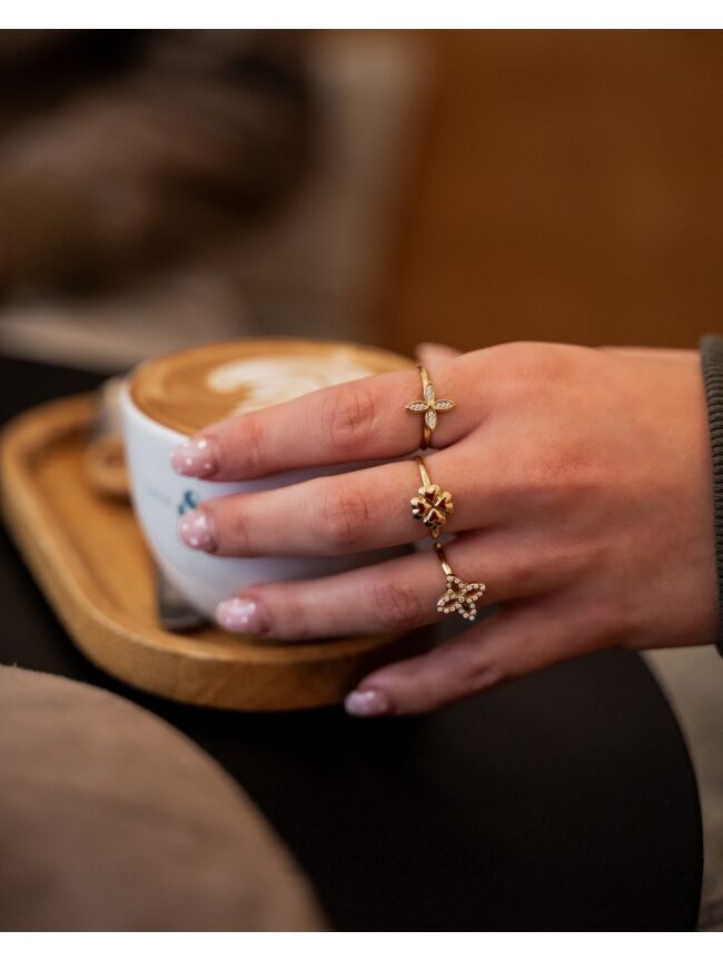 De ring klaver hartjes is een lieve en betekenisvolle ring met een klaver vol hartjes, hét symbool voor geluk en liefde. De speelse vorm en subtiele glans maken deze ring een echte eyecatcher. Perfect om cadeau te doen of zelf te dragen als jouw persoonlijke geluksbrenger.