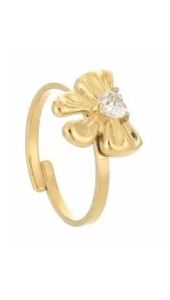 Deze ring met een strikje en een hartjes steentje in het midden is gewoon te schattig om te weerstaan! Het strikje geeft een speelse touch, terwijl het hartjes steentje een romantische flair toevoegt. Perfect om te dragen als je een beetje extra sparkle aan je look wilt geven, of om je favoriete ringen te mixen voor een trendy stacked effect.