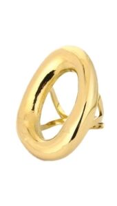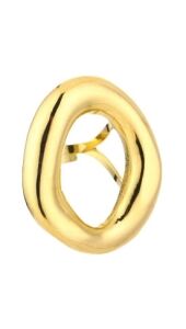 Gouden ovale ring met een moderne, minimalistische vorm. Subtiel statement piece dat elke look net wat extra geeft. Perfect om los te dragen of te combineren met andere sieraden