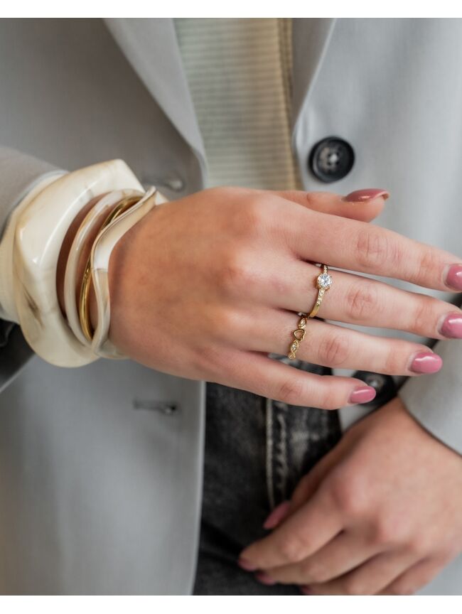 Deze ring is ontworpen met een elegant hartje dat wordt geaccentueerd door een sprankelende zirkonia. Het subtiele, tijdloze ontwerp geeft elke look een zachte en vrouwelijke uitstraling. Een stijlvolle ring die mooi tot zijn recht komt wanneer je hem solo draagt, maar ook perfect te combineren is met andere ringen voor een persoonlijke, gelaagde stijl.
