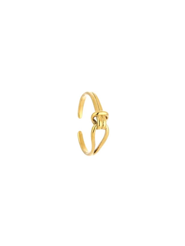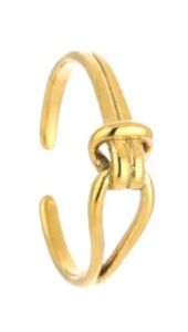 Deze goudkleurige open ring met knoopdetail heeft een strak en modern design. Subtiel, maar nét even anders – perfect voor dagelijks gebruik.