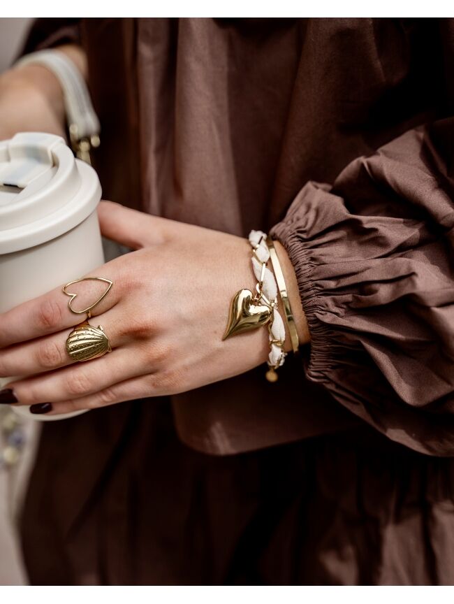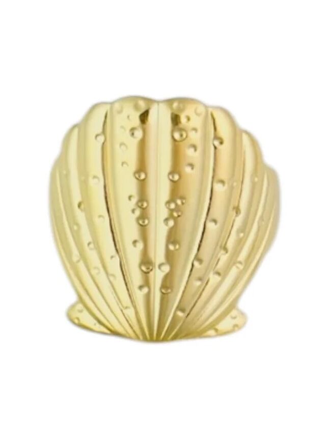 Deze schitterende gouden ring is een symbool van verfijnde elegantie. De grote, goudkleurige schelp vormt het stralende middelpunt. Mix and match met andere sieraden uit de collectie voor een optimale look.