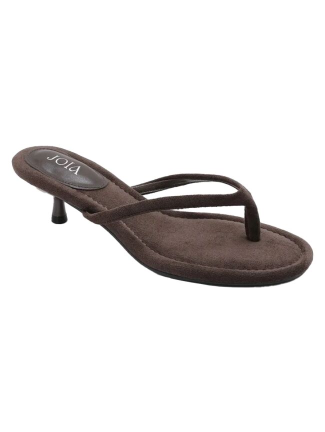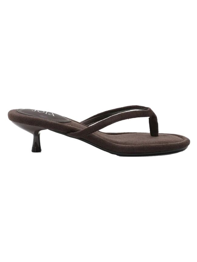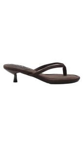 Deze bruine slipper met hak heeft een minimalistische en elegante uitstraling. De smalle bandjes en subtiele kitten heel geven de schoen een vrouwelijke touch. Perfect om te dragen onder een jeans, jurk of pantalon voor een stijlvolle look.
