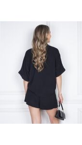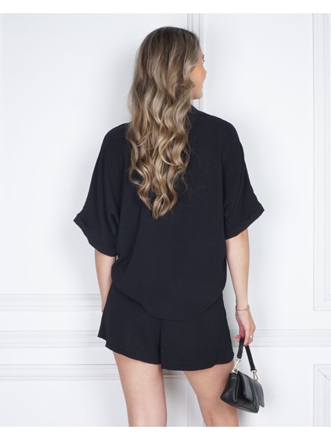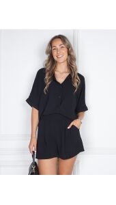 Your new fave! Deze set mag niet ontbreken in jouw zomer garderobe. De blouse sluit met knoopjes en heeft een kraagje. De short is high waisted, heeft plooitjes aan de bovenkant en elastiek in de taille. Je shopt het als set dus bent meteen ready to go!