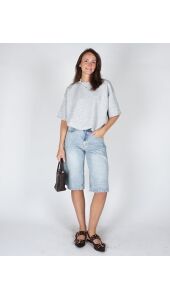 Deze denim jort bermuda is dé must-have voor een casual en trendy look. De langere lengte en loose fit geven de broek een stoere, relaxte uitstraling, terwijl de lichte wassing zorgt voor een frisse, zomerse vibe. Wij zijn fan!