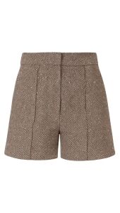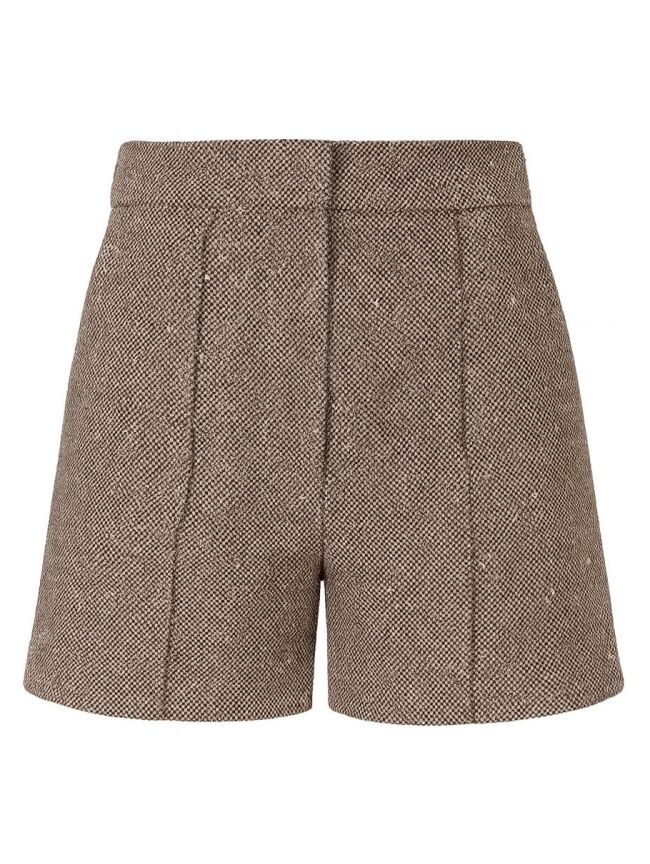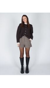 De short met strass in bruin geeft je look meteen een luxe, speelse touch. De warme kleur vormt een mooie basis, terwijl de subtiele strassdetails voor een sprankelend accent zorgen. De short zit comfortabel en valt mooi in model, perfect voor een outfit die nét dat beetje extra mag hebben.