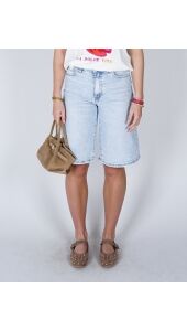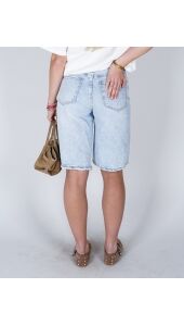 Deze lichtblauwe denim bermuda short is dé perfecte mix van comfort en stijl. De iets langere lengte tot net boven de knie geeft een moderne, relaxte uitstraling, terwijl de zachte wassing zorgt voor een frisse, zomerse look. Helemaal on-trend!